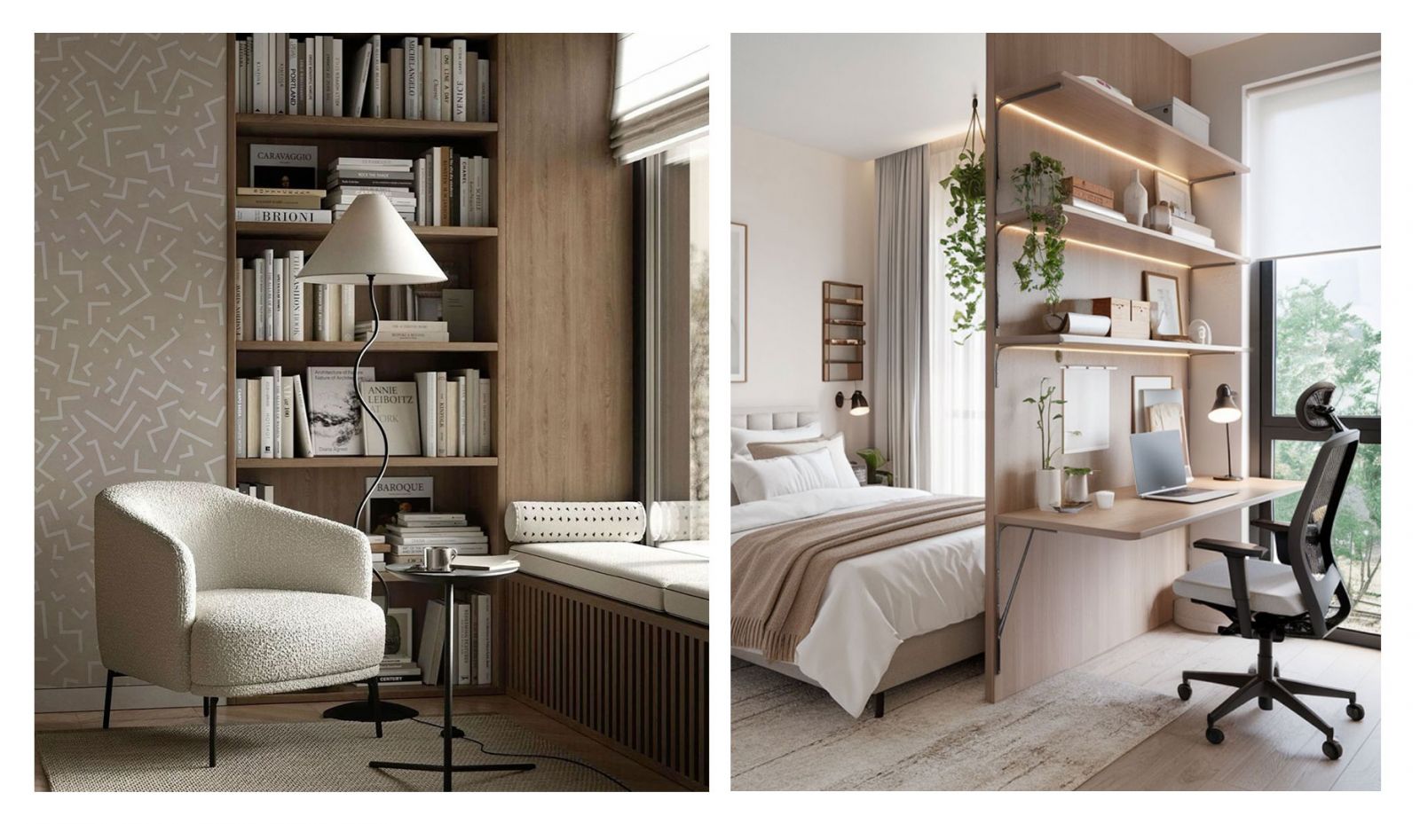 Мини-библиотека в спальне
