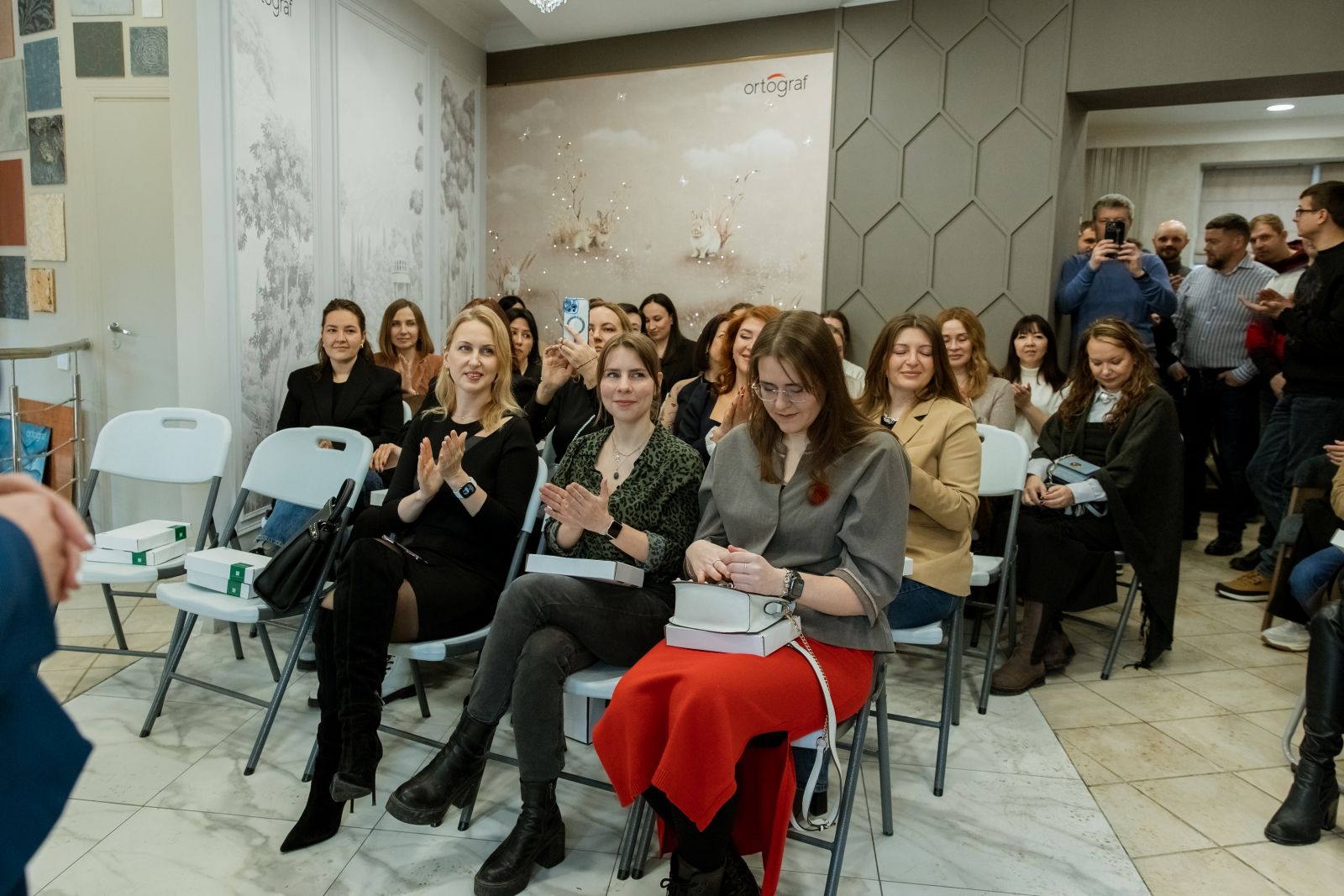 В рамках открытия компания ОРТОГРАФ провела презентацию по нашей экологичной продукции. Это была отличная возможность не только рассказать о преимуществах и особенностях бесшовных обоев и фресок ECO, но и обсудить с профессионалами все тонкости их применения в реальных проектах. Мы всегда рады таким встречам, ведь именно в живом диалоге рождаются новые идеи.